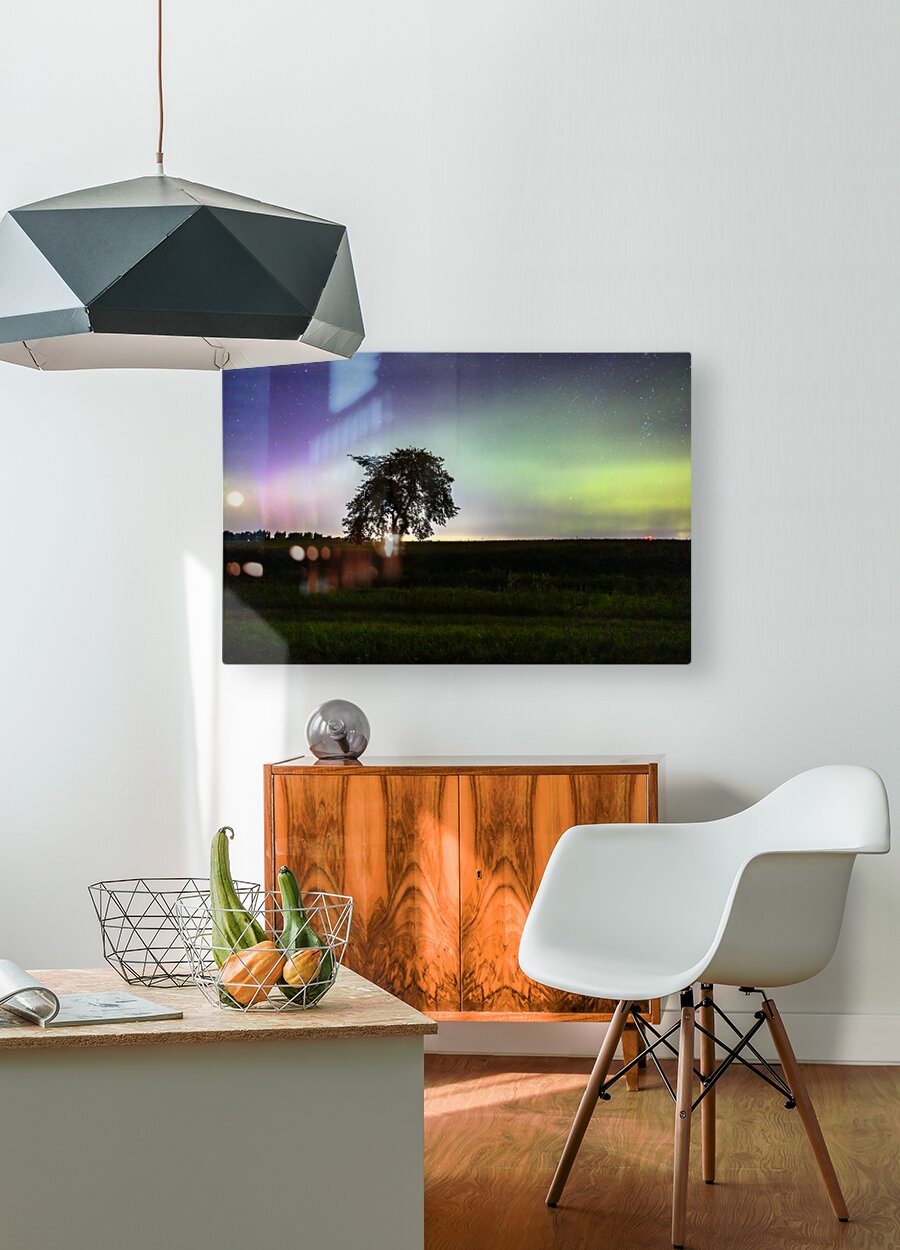 Get this artwork "Lone Tree and Northern Lights" in a framed print.