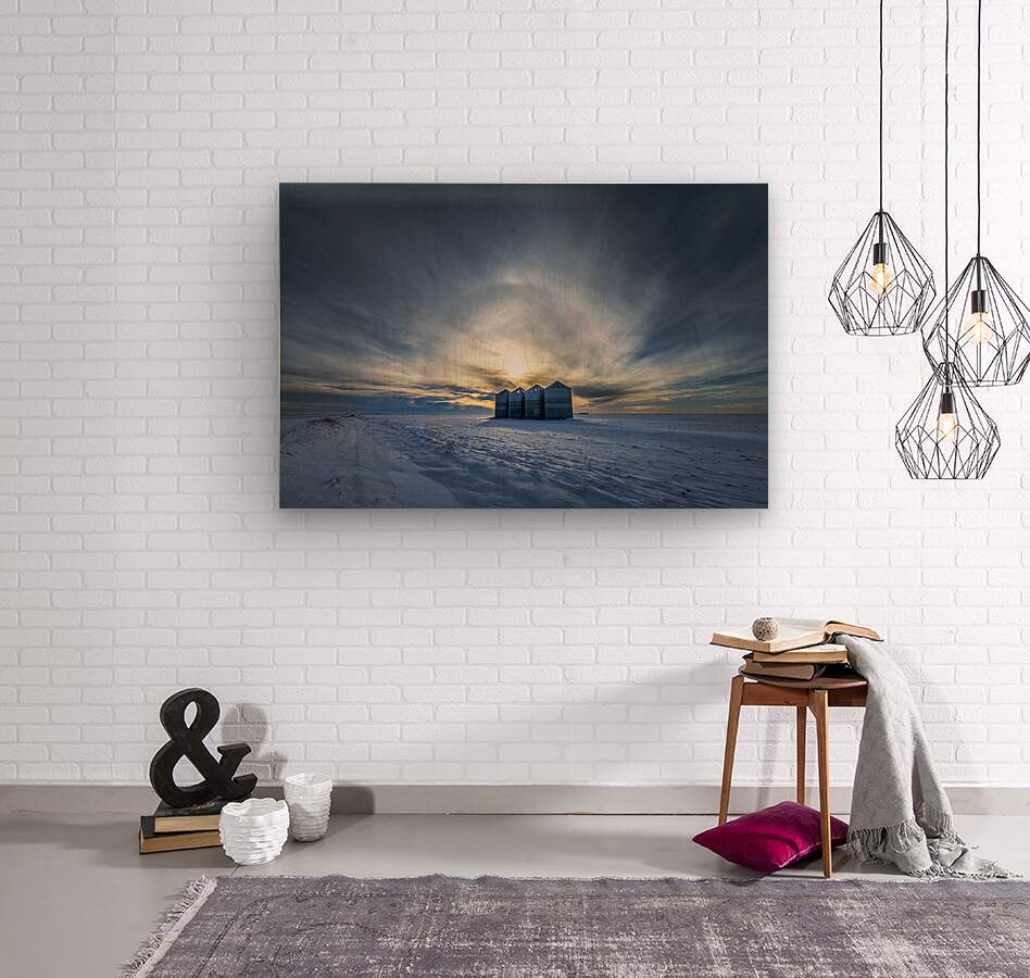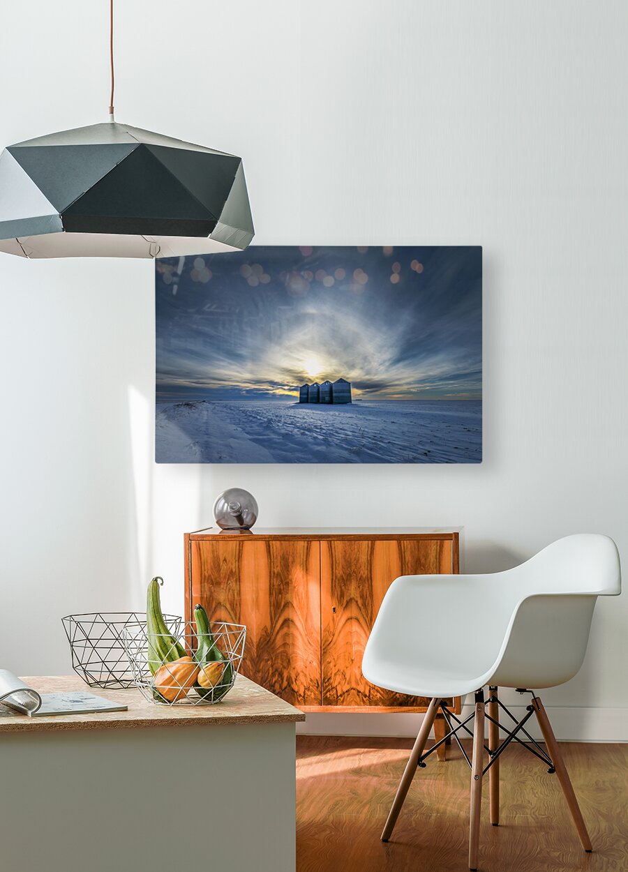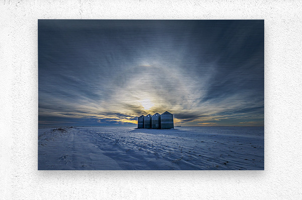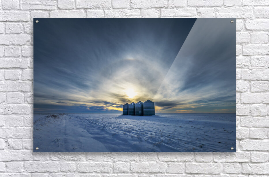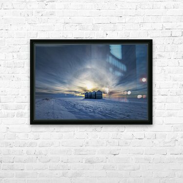 Get this artwork "Sundogs Behind Grain Bins" in a framed print.