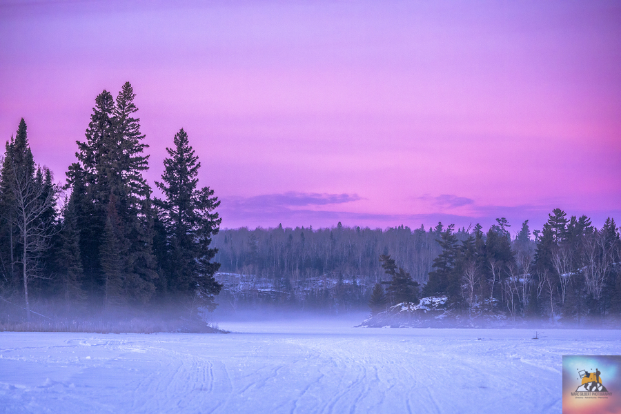 On that day in January, I remember feeling a bit under the weather, meanwhile, the weather itself was actually pretty perfect at just -5 or so and no wind so I decide that a hike would do me some good, I drove to Falcon Lake in Whiteshell Provincial Park and did several of the trails which as always, really lifted my spirit up, I really need my time in nature. After watching the sunset from one of the cliffs, I walked back down but before returning to my car and call it a day, I decided to take a short walk on the ice and continue to enjoy the changing sky colors after sunset and I'm glad I did, the sky turned to pink just as a fog started to rise from the ice that had warmed up during the day and was starting to cool off again, pure delight to the eyes and soul!
