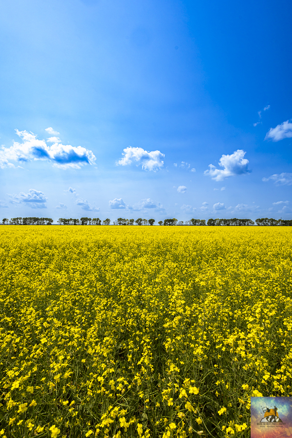 One of the most iconic scene of rural Manitoba are the bright yellow canola fields stretching all the way to the horizon under a contrasting blue sky....[+]