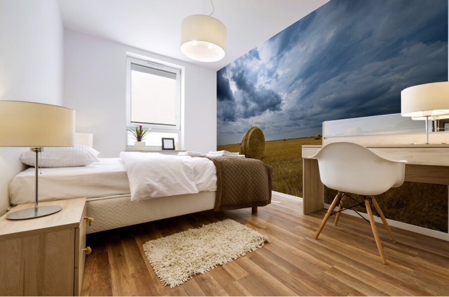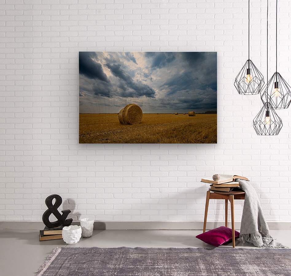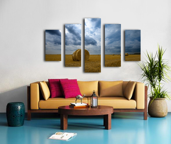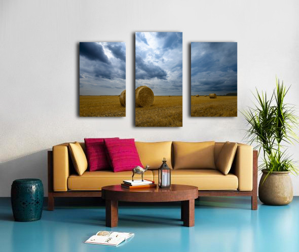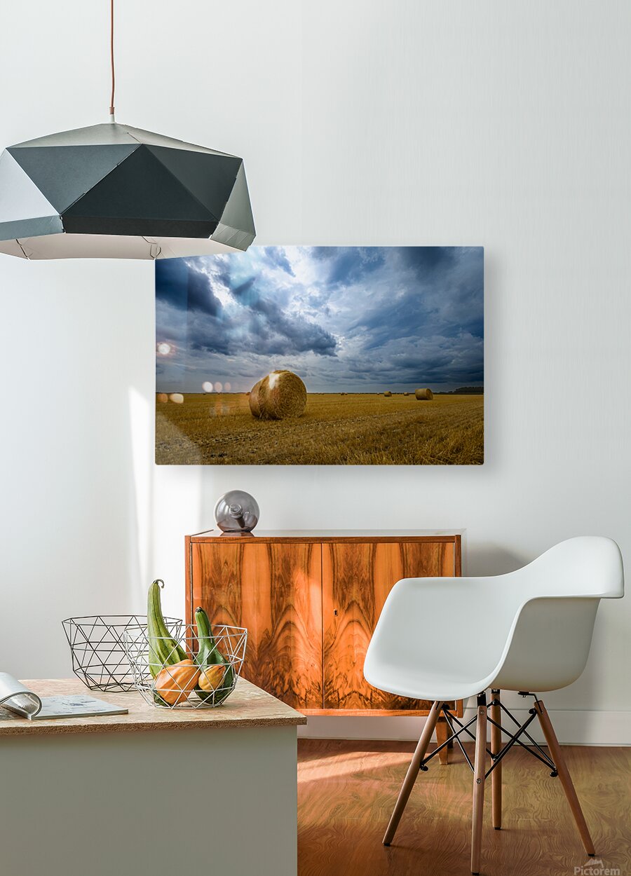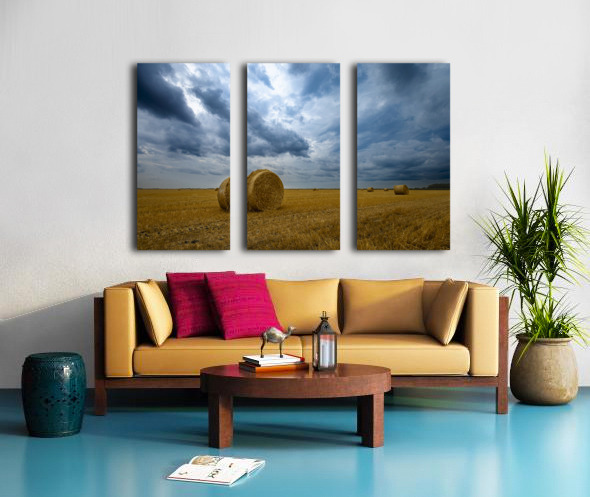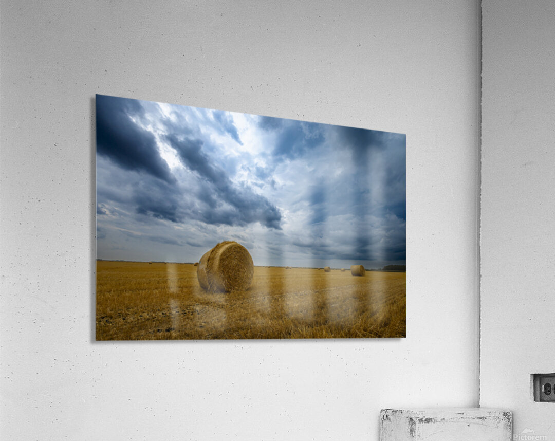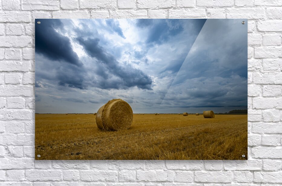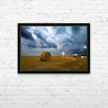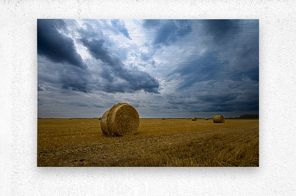 Get this artwork "Hay Bales Under a Cloudy Sky" in a framed print.