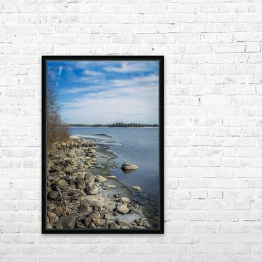 Discover the tranquil beauty of melting ice on the shores of Lake of the Woods near Kenora. This artwork beautifully portrays the gentle transition of seasons, where the icy edges meet the calm waters, creating a serene landscape. The scattered rocks and trees frame the scene, inviting you to reflect on the quiet moments that nature offers. It’s a reminder of the simple joys found in our surroundings, capturing the essence of peaceful lakeside life. This limited edition print is a perfect addition to your space, bringing a touch of nature's calm indoors. Don’t miss the opportunity to make it a part of your collection! Lake of the Woods, Kenora, Ontario 2025