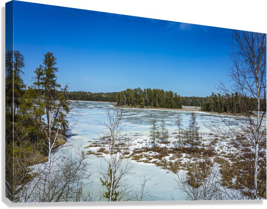 On my way to Rushing River, Ontario, I stumbled upon Isabel Lake, where the ice was beginning to melt, revealing a tranquil scene that begged to be captured. This artwork presents a peaceful island surrounded by shimmering ice, framed by tall trees that stand sentinel along the shore. The clear blue sky reflects on the lake's surface, creating a serene atmosphere that invites contemplation. As you take in this piece, you can almost feel the crisp air and hear the gentle whispers of the forest. It’s a reminder of the stillness that winter brings, making it a perfect addition to your space that encourages relaxation and reflection. Bring home this limited edition print and let it transform your environment into a peaceful retreat.