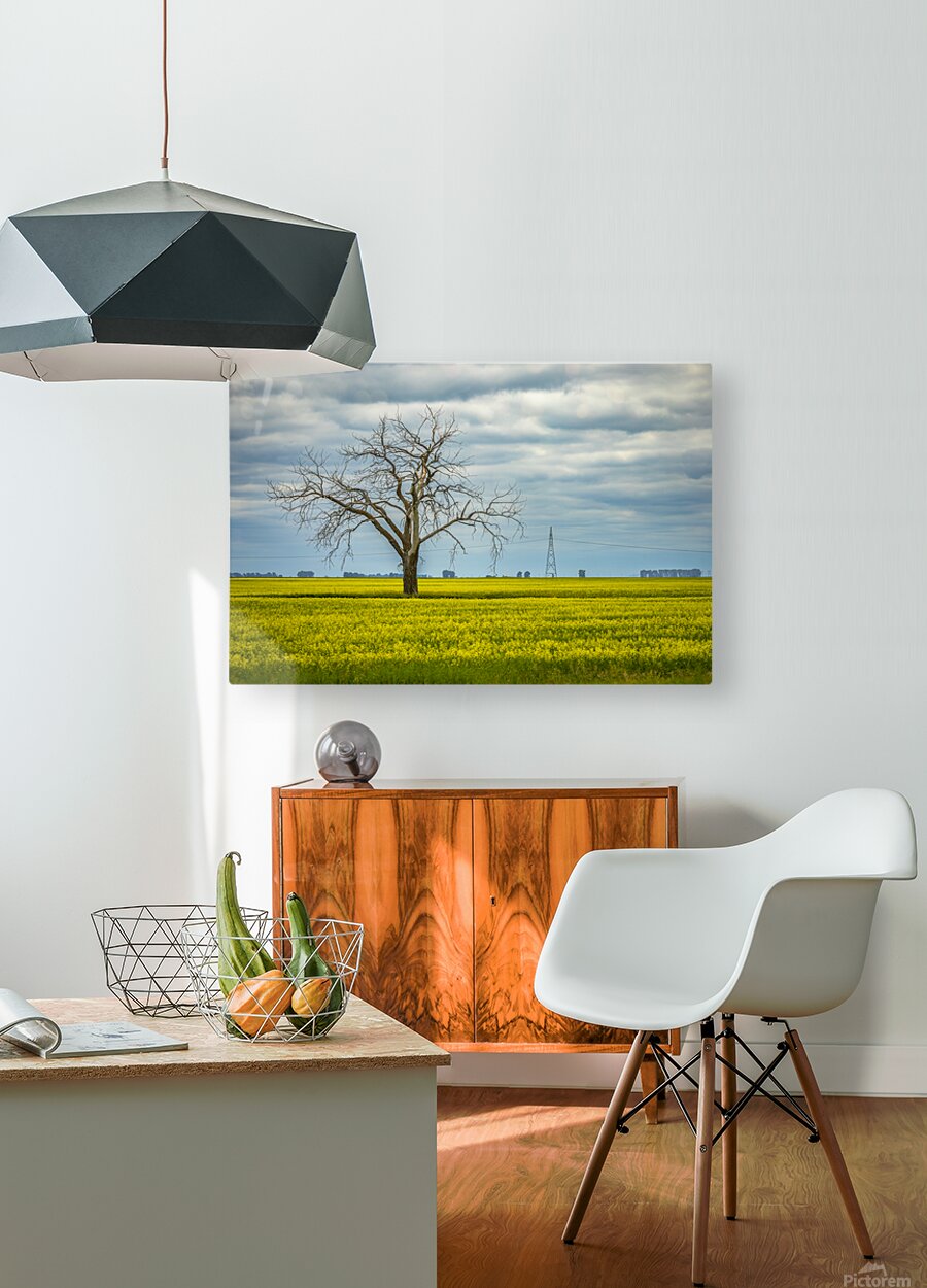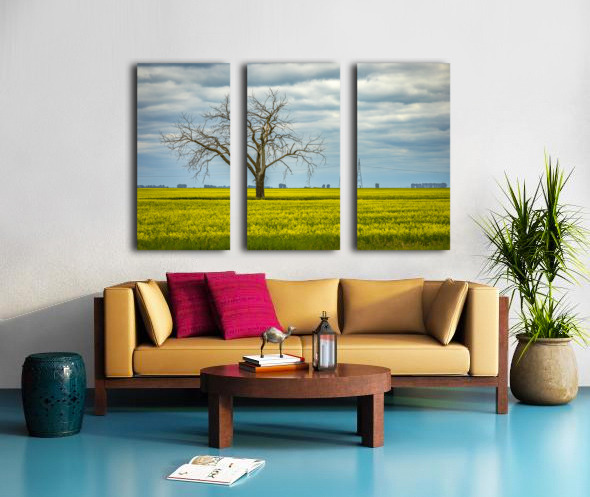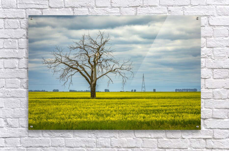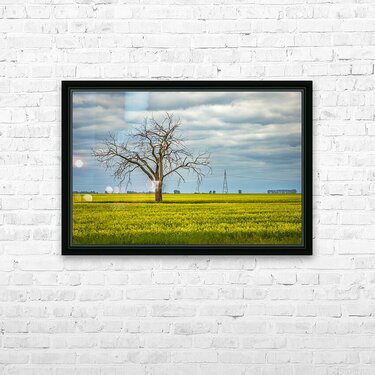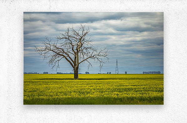 In this striking scene, a dead tree stands resolutely in a vibrant canola field near Letellier, Manitoba. Its bare branches reach skyward, creating a poignant contrast against the lush yellow blooms that blanket the ground. The moody clouds overhead add depth to the landscape, enhancing the interplay between light and shadow. This image evokes a sense of solitude and resilience, inviting reflection on nature's raw beauty. Imagine this piece enhancing your space, bringing a touch of the serene outdoors into your home. It’s a wonderful addition for anyone who appreciates the quiet power of nature. Don’t miss the opportunity to own this limited edition print! Letellier, Manitoba, 2025