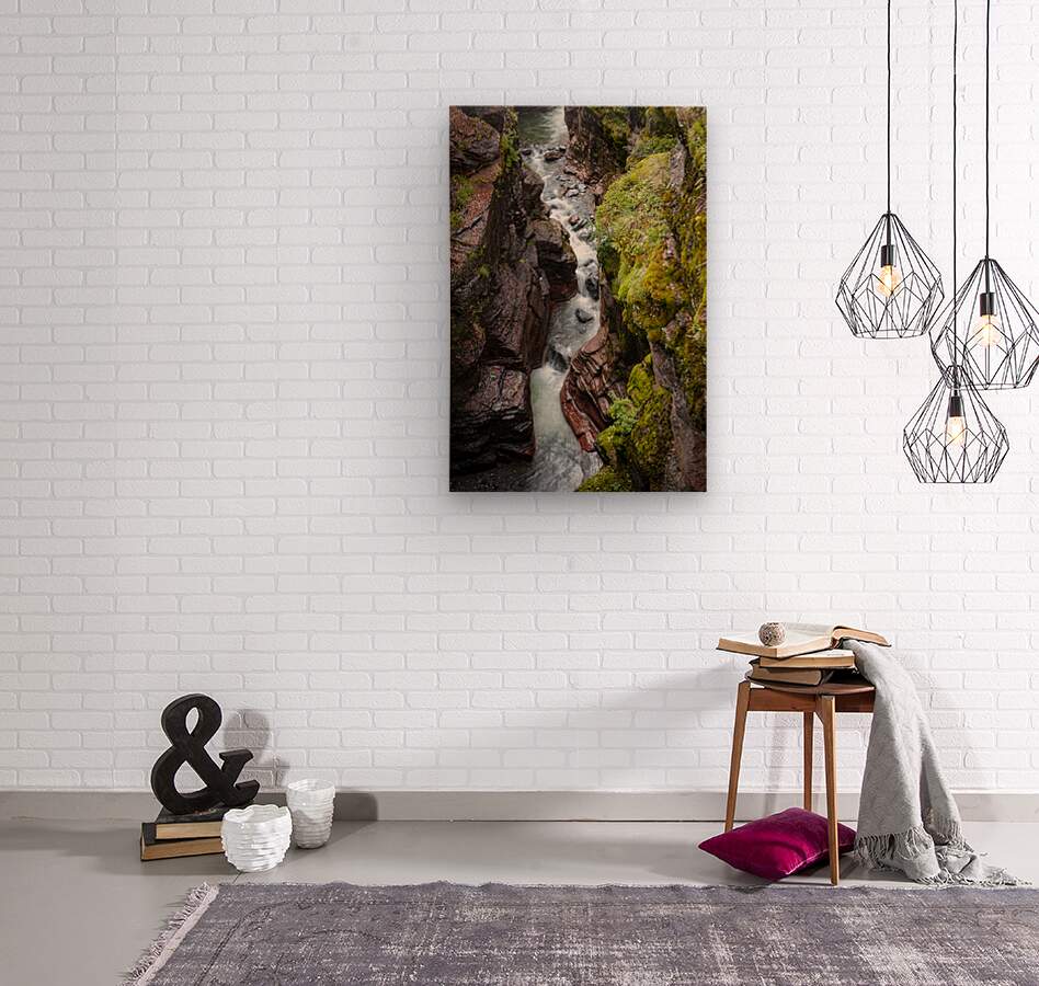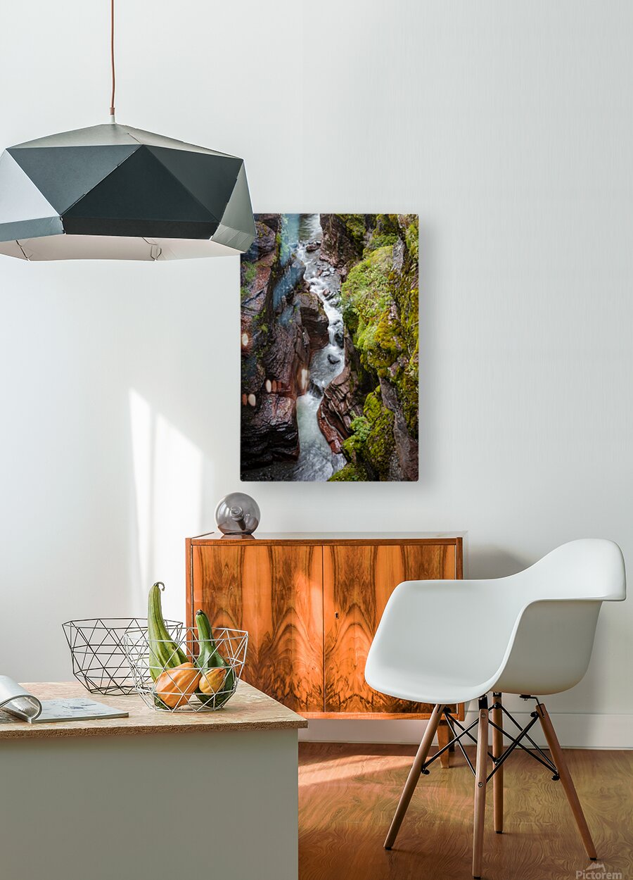 In the heart of Red Rock Canyon, Alberta, this captivating piece reveals the serene flow of a hidden river meandering through rugged cliffs. The deep ...[+]