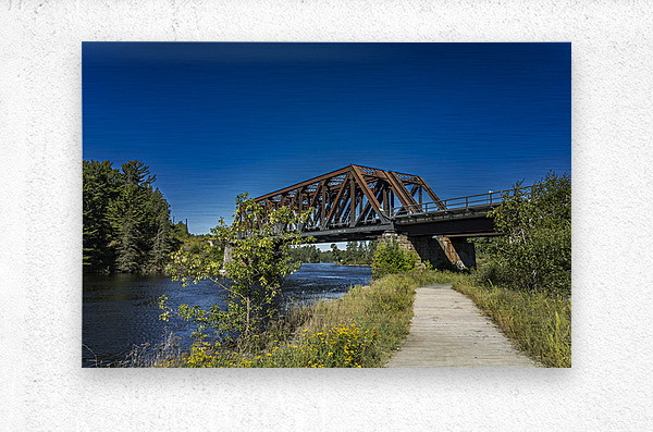 This striking image presents a weathered bridge arching gracefully over a tranquil waterway, framed by lush greenery and a clear blue sky. The path leading toward the bridge invites exploration, hinting at the adventures that await along the trail. The interplay of light and shadow among the trees adds depth, creating a serene atmosphere that reflects the beauty of Kenora, Ontario's natural landscapes. Captured on Tunnel Island Trail, this piece reveals the quiet strength of rural life and the simple joys found in nature. Limited edition prints are available, making this artwork a perfect addition to your space, inviting a touch of the outdoors into your home.