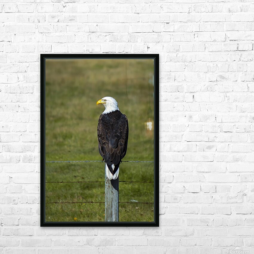 This striking image features a majestic bald eagle perched on a weathered fence post, embodying the spirit of wildlife in its natural habitat. Captured near Vita, Manitoba the eagle's sharp gaze and impressive plumage reveal the intricate details of its feathers, showcasing the beauty of nature. The soft, blurred background emphasizes the eagle's commanding presence, inviting viewers to appreciate the quiet strength found in these moments. This piece serves as a reminder of the remarkable wildlife that surrounds us and would make a thoughtful addition to any space, bringing a touch of the wild indoors.