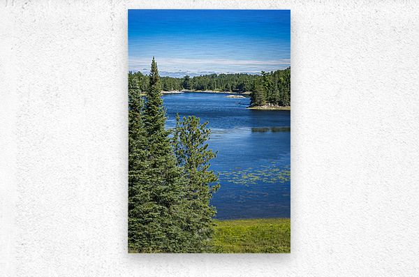 This tranquil scene, taken in the summer of 2025 on Tunnel Island Trail nestled within Kenora, reveals the beauty of Northwestern Ontario's natural landscape. Framed by lush trees, the water reflects the clear blue sky, creating a harmonious balance between earth and sky. The gentle ripples on the lake's surface invite quiet contemplation, while the vibrant greenery adds a touch of life to the composition. This piece expresses the peaceful essence of rural Canadian life, reminding us of the simple yet profound moments found in nature. A wonderful addition to your space, it serves as a daily reminder of the beauty that surrounds us.