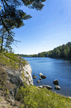 This tranquil scene, taken in the summer of 2025 on Tunnel Island Trail nestled within Kenora, reveals the beauty of Northwestern Ontario's natural landscape. Framed by lush trees, the water reflects the clear blue sky, creating a harmonious balance between earth and sky. The gentle ripples on the lake's surface invite quiet contemplation, while the vibrant greenery adds a touch of life to the composition. This piece expresses the peaceful essence of rural Canadian life, reminding us of the simple yet profound moments found in nature. A wonderful addition to your space, it serves as a daily reminder of the beauty that surrounds us.