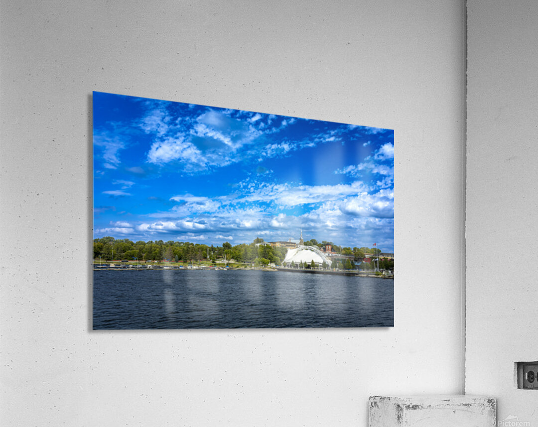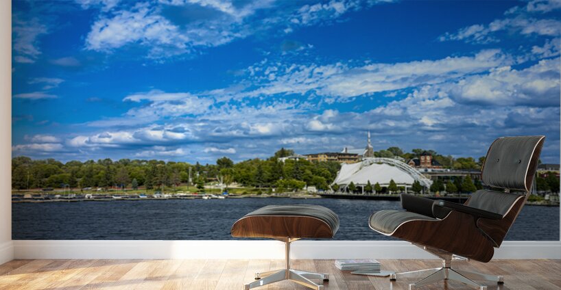 This striking image presents a serene view of Kenora's Harbour, where the tranquil waters reflect a vibrant sky adorned with fluffy clouds. The architectural lines of the pavilion stand in harmony with the lush greenery, creating a picturesque landscape that embodies the essence of this charming Canadian locale. Captured during a moment of quiet reflection, this piece invites you to appreciate the beauty of nature and community life in Northern Ontario. The interplay of light and shadow across the water adds depth, making it a compelling addition to any space. Explore the tranquility of Kenora's Harbour through this artwork, perfect for those who cherish the beauty of rural landscapes.