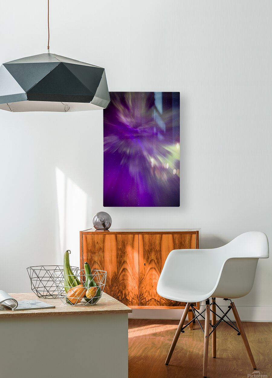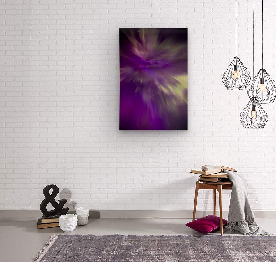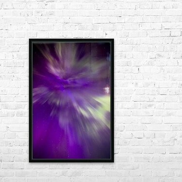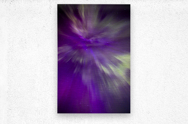 This artwork presents a mesmerizing view of the cosmos, captured in the summer of 2025 in the Red River Valley during a powerful solar storm. Vibrant hues of purple and green swirl together, evoking the ethereal beauty of the aurora borealis. The dynamic movement of light and color reveals a celestial dance, inviting viewers to reflect on the wonders of the universe.
