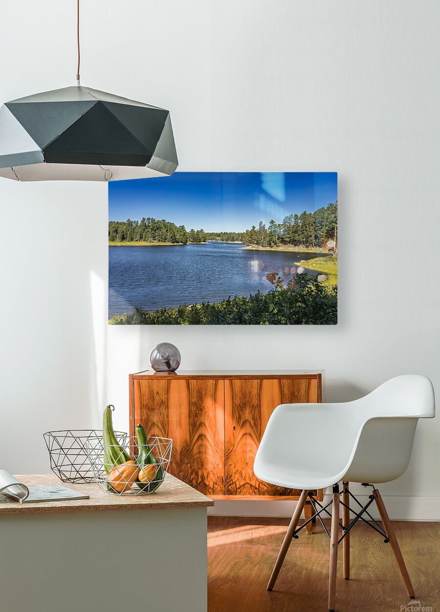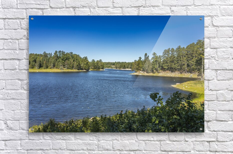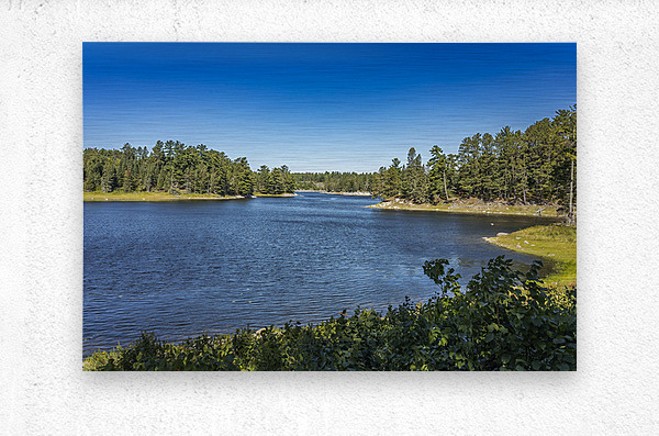 This tranquil scene, captured on Tunnel Island Trail nestled within the city of Kenora, reveals the harmonious interplay of water and sky, framed by lush trees that stand sentinel along the shore. The clear blue sky reflects on the water's surface, creating a sense of calm and inviting contemplation. In this moment, the natural beauty of Northwest Ontario unfolds, showcasing the quiet strength of our landscapes. Each element in this composition contributes to a peaceful atmosphere, perfect for those who appreciate the subtleties of nature. Consider adding this piece to your space, where it can serve as a daily reminder of the serene beauty found in our surroundings.