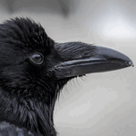 This close-up of a raven reveals the intricate textures of its feathers and the sharp curve of its beak against a muted backdrop. The image reflects t...[+]