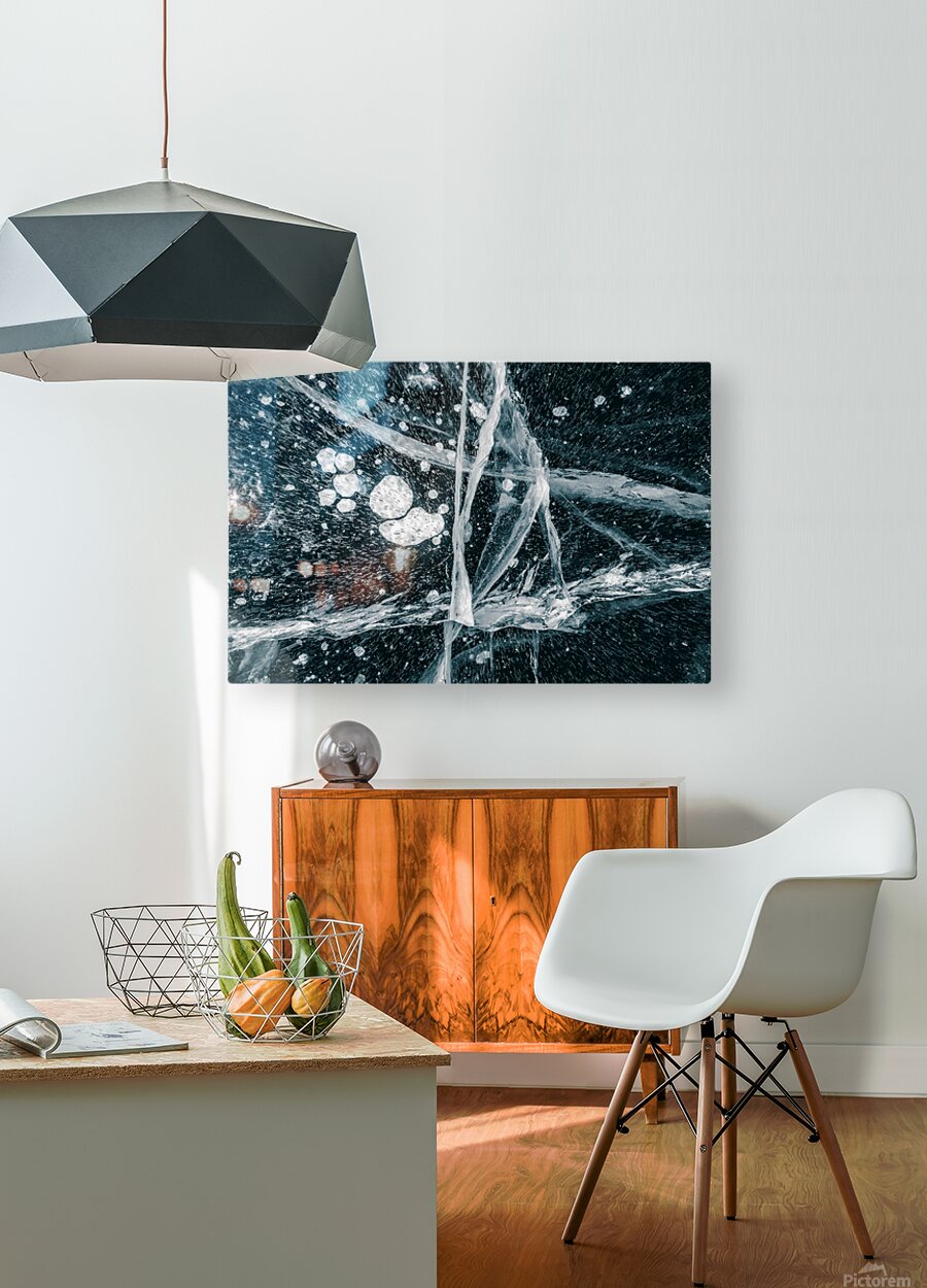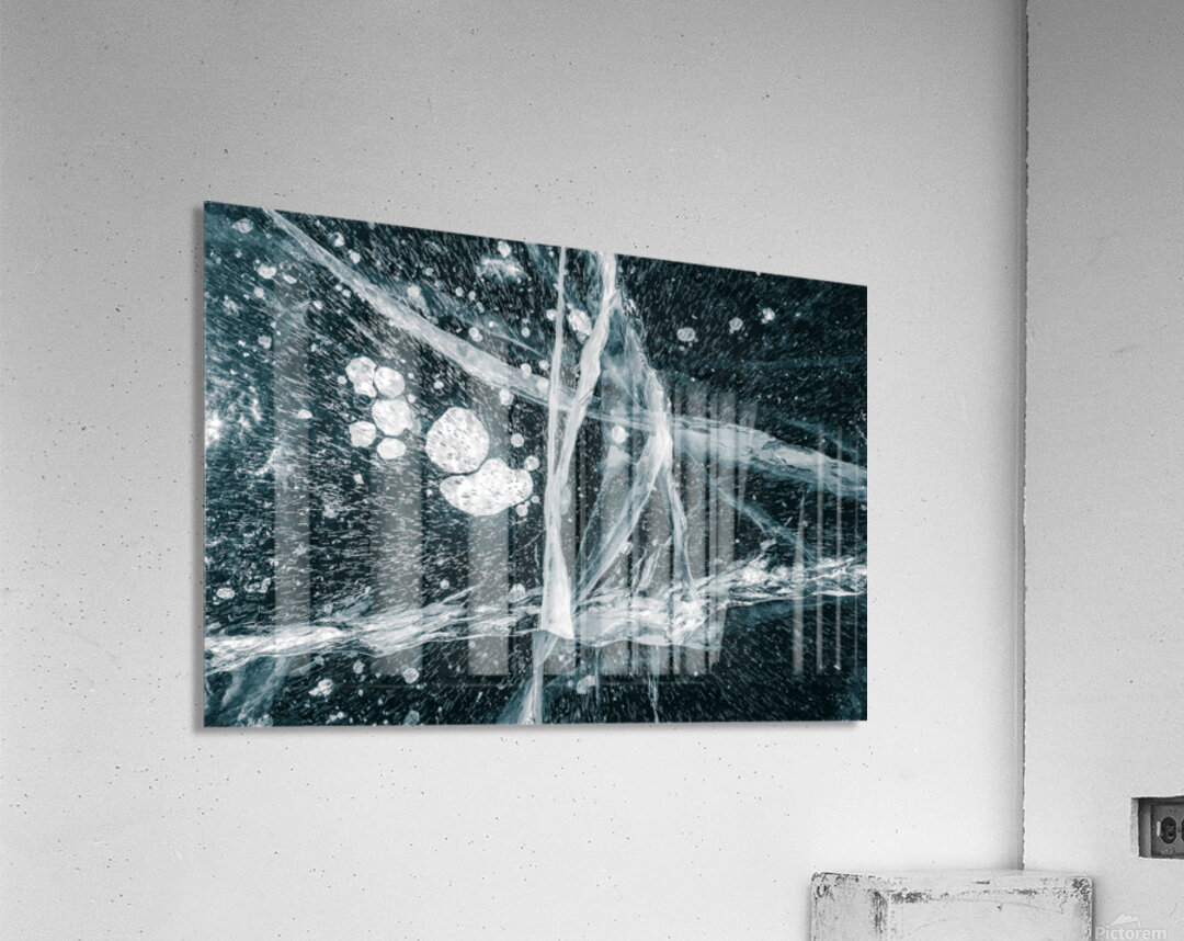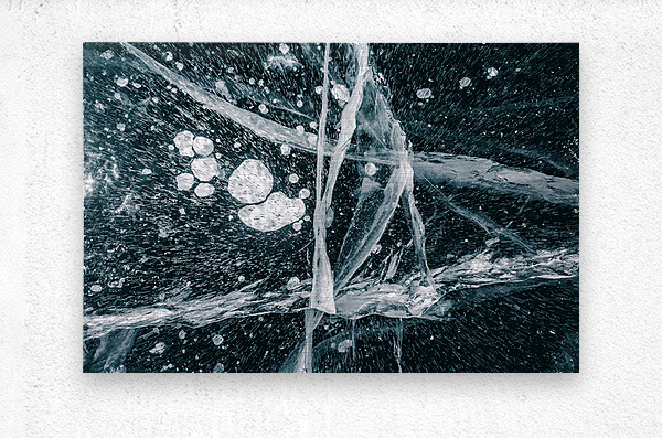 Frozen Veins presents a close-up view of ice formations shaped by natural cracks and trapped air bubbles beneath the surface. The transparency reveals...[+]