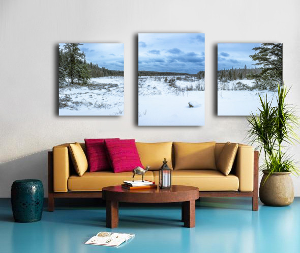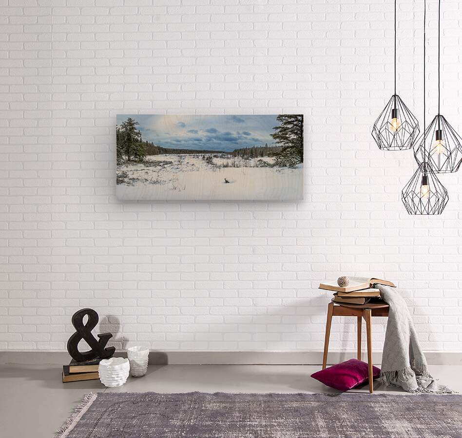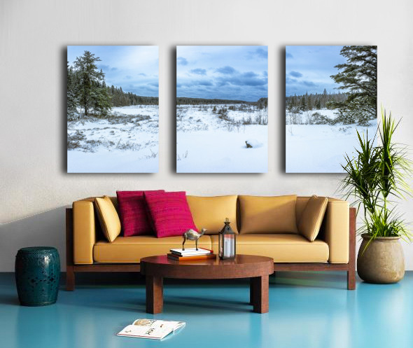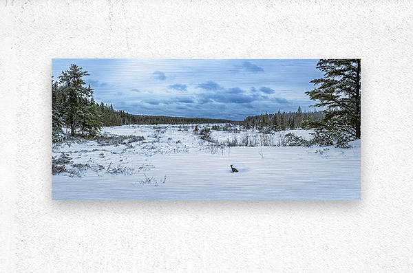 Winter Expanse — Captured on the Hanson Creek Trail in Whiteshell Provincial Park, this panoramic print presents a snow-covered expanse framed by de...[+]