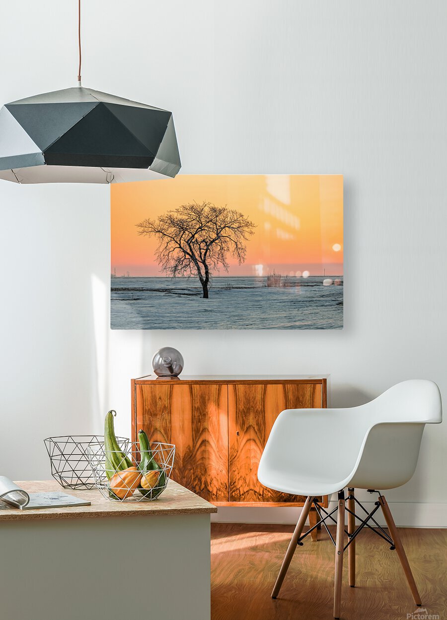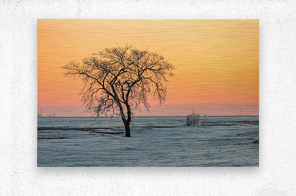 Pastel color sunrise with lone tree in a farmer's field near St-Pierre Jolys, Manitoba 2022