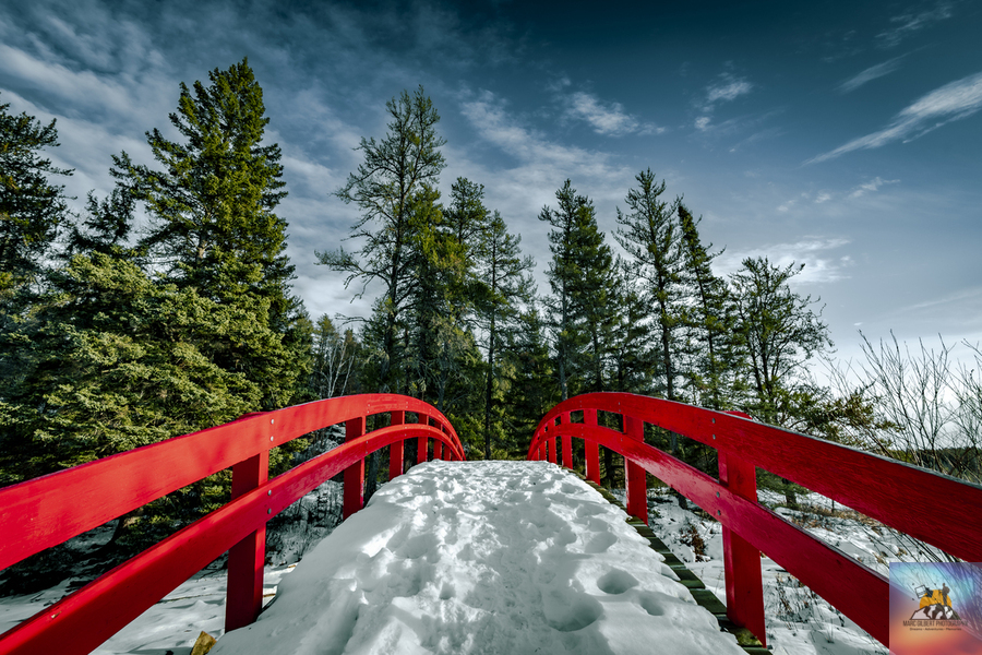 Red bridge at Hanson Creek's Trail in Whiteshell Provincial Park