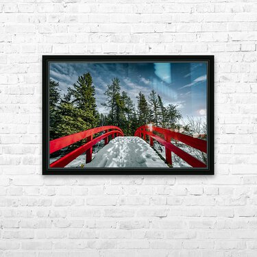 Get this artwork "Red Bridge in Snow" in a framed print.