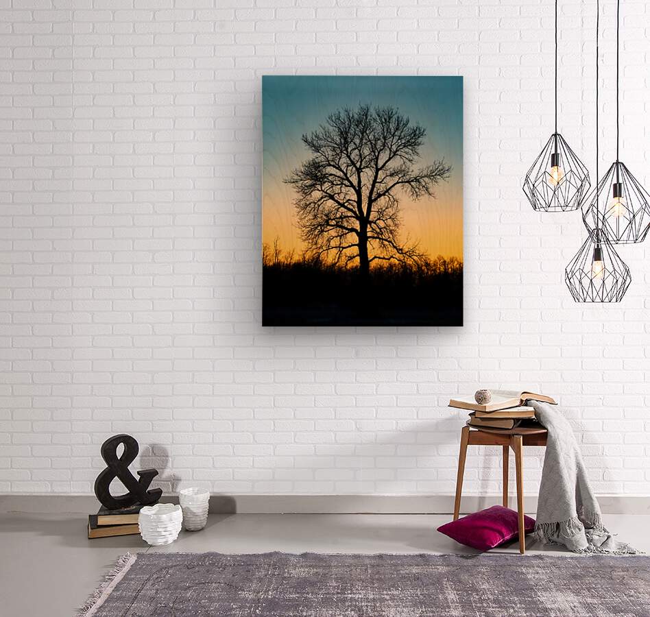 Lone Tree at Dusk  Wood print