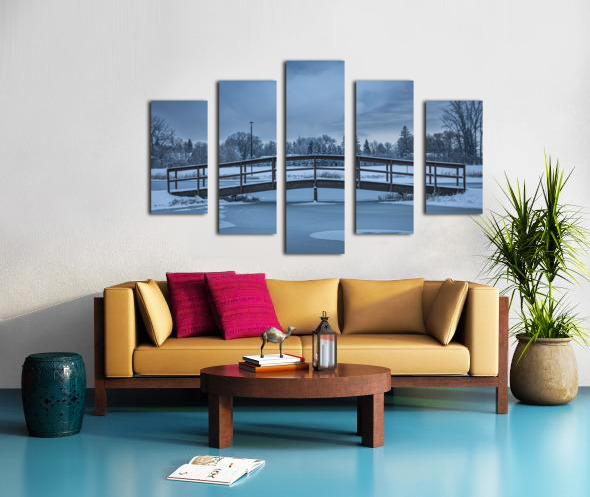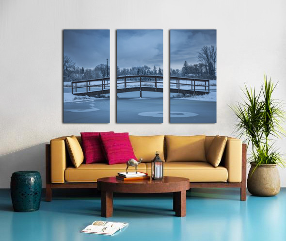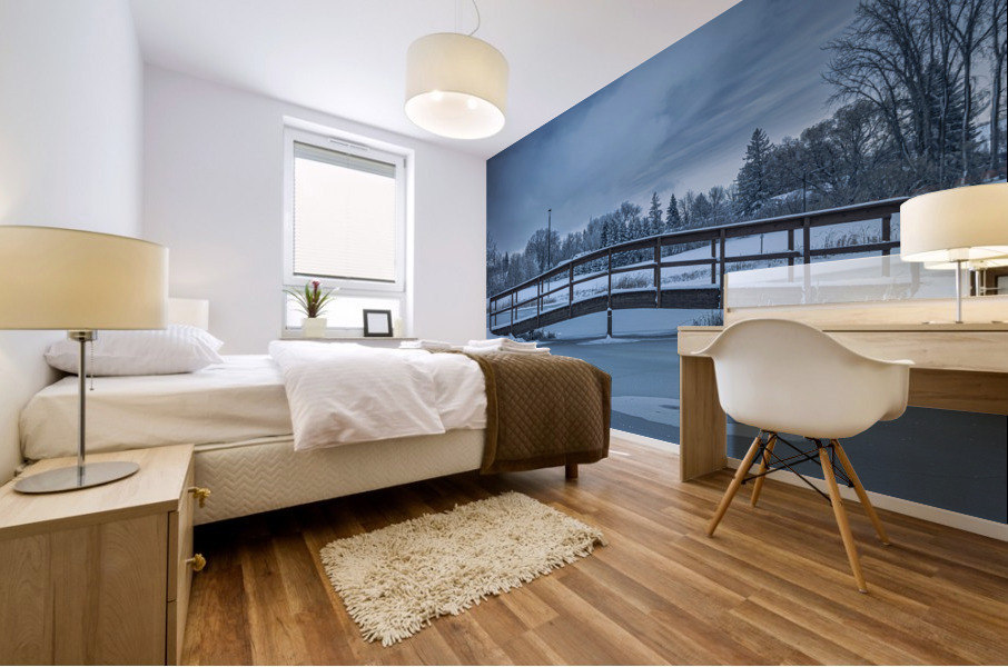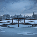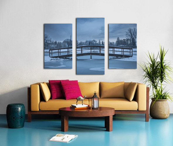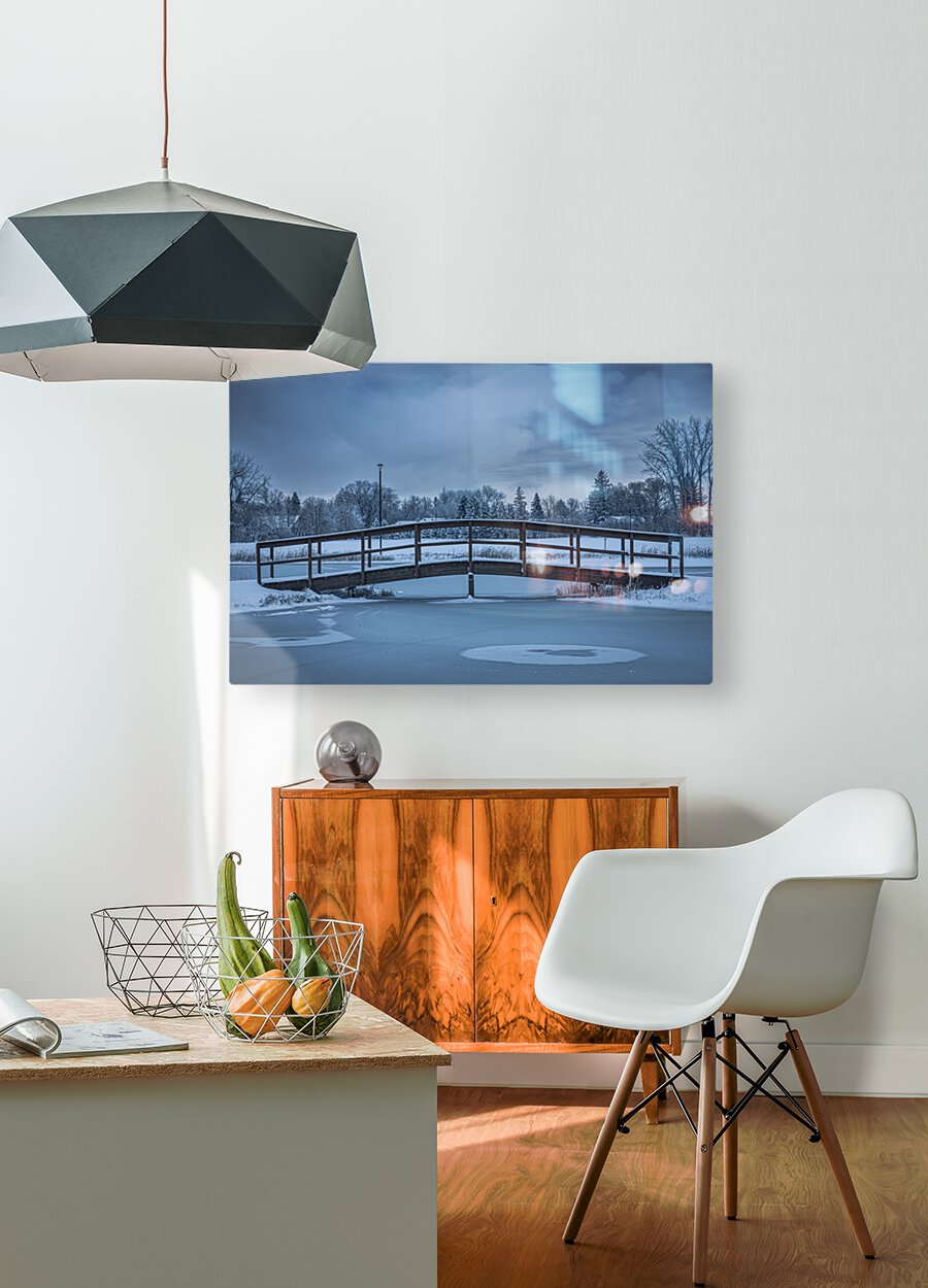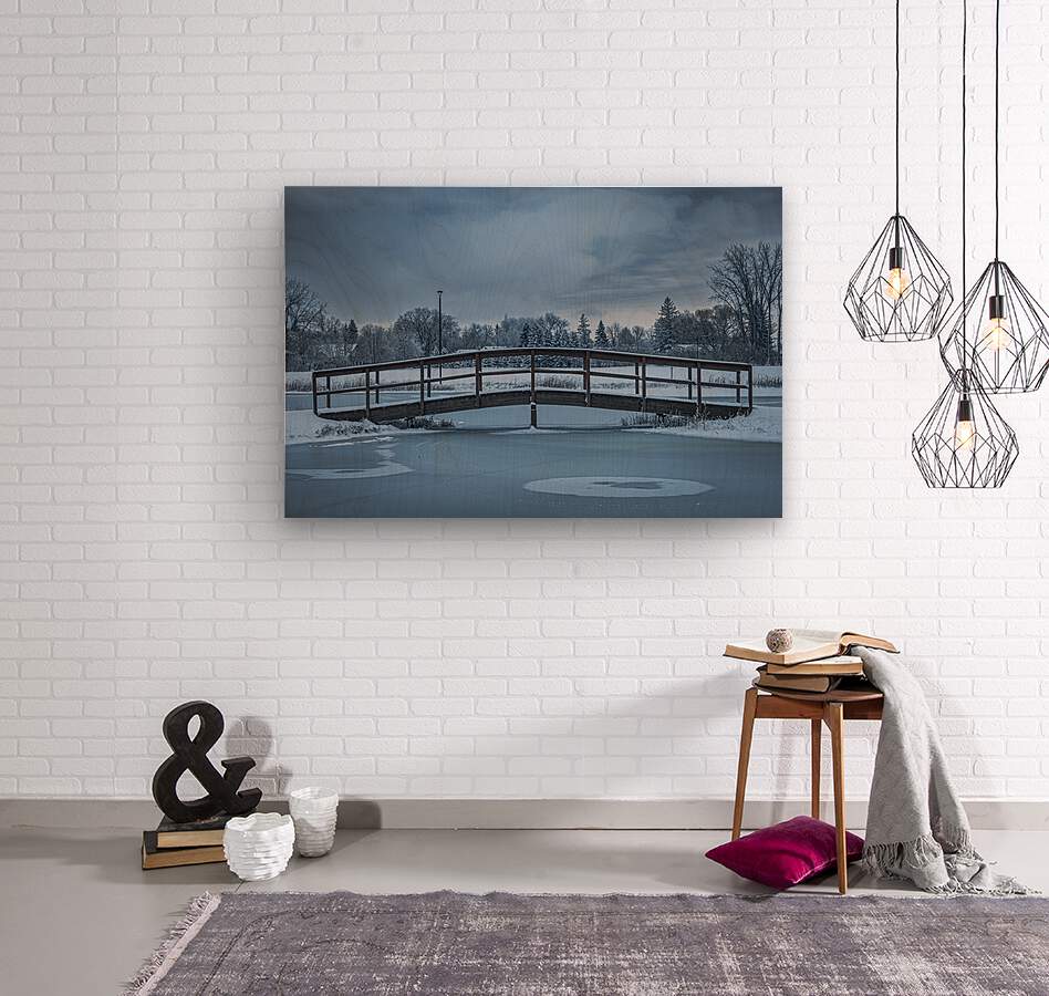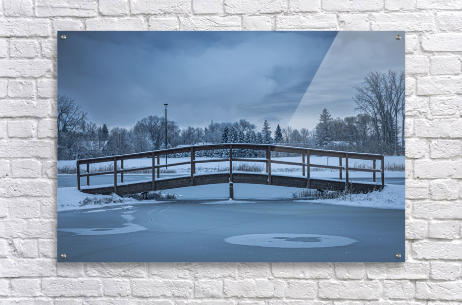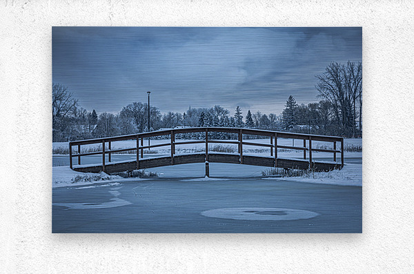 Get this artwork "Bridge Over Pond at First Snow" in a framed print.