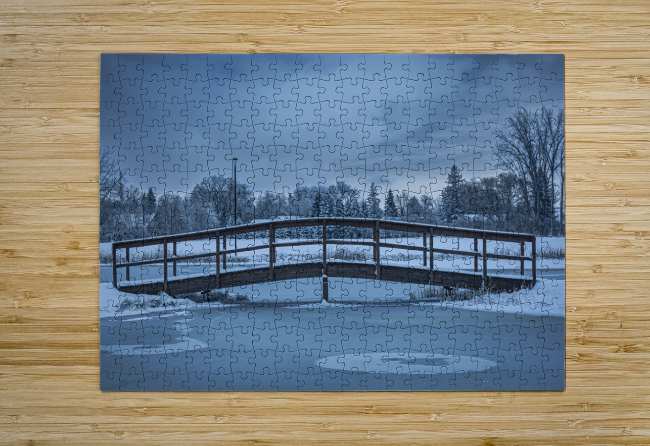 Bridge Over Pond at First Snow Marc Gilbert Photography Puzzle printing