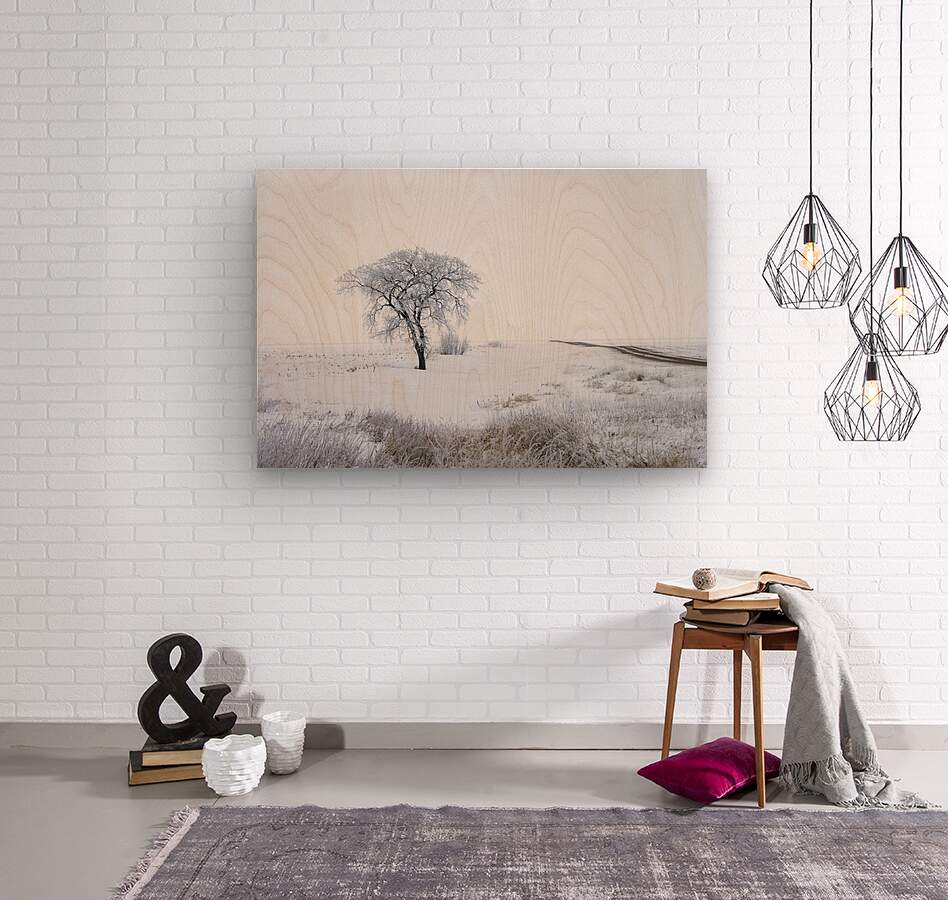 Get this artwork "Lone Tree in Winter Fog" in a framed print.
