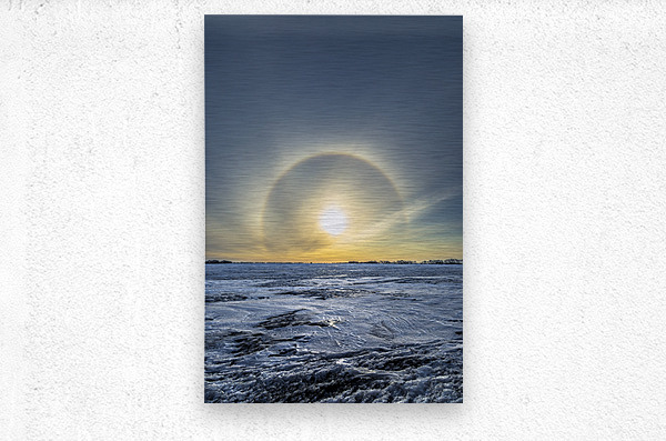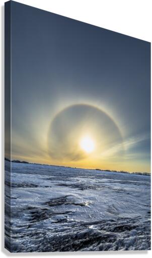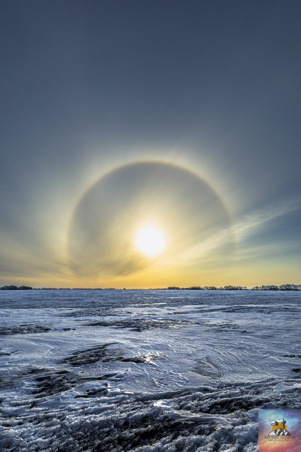 Halo surrounding the sun on a frigid morning in rural Manitoba during March 2023