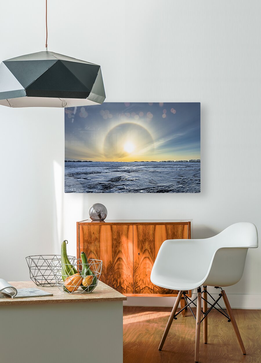 Halo surrounding the sun on a frigid morning in rural Manitoba during March 2023