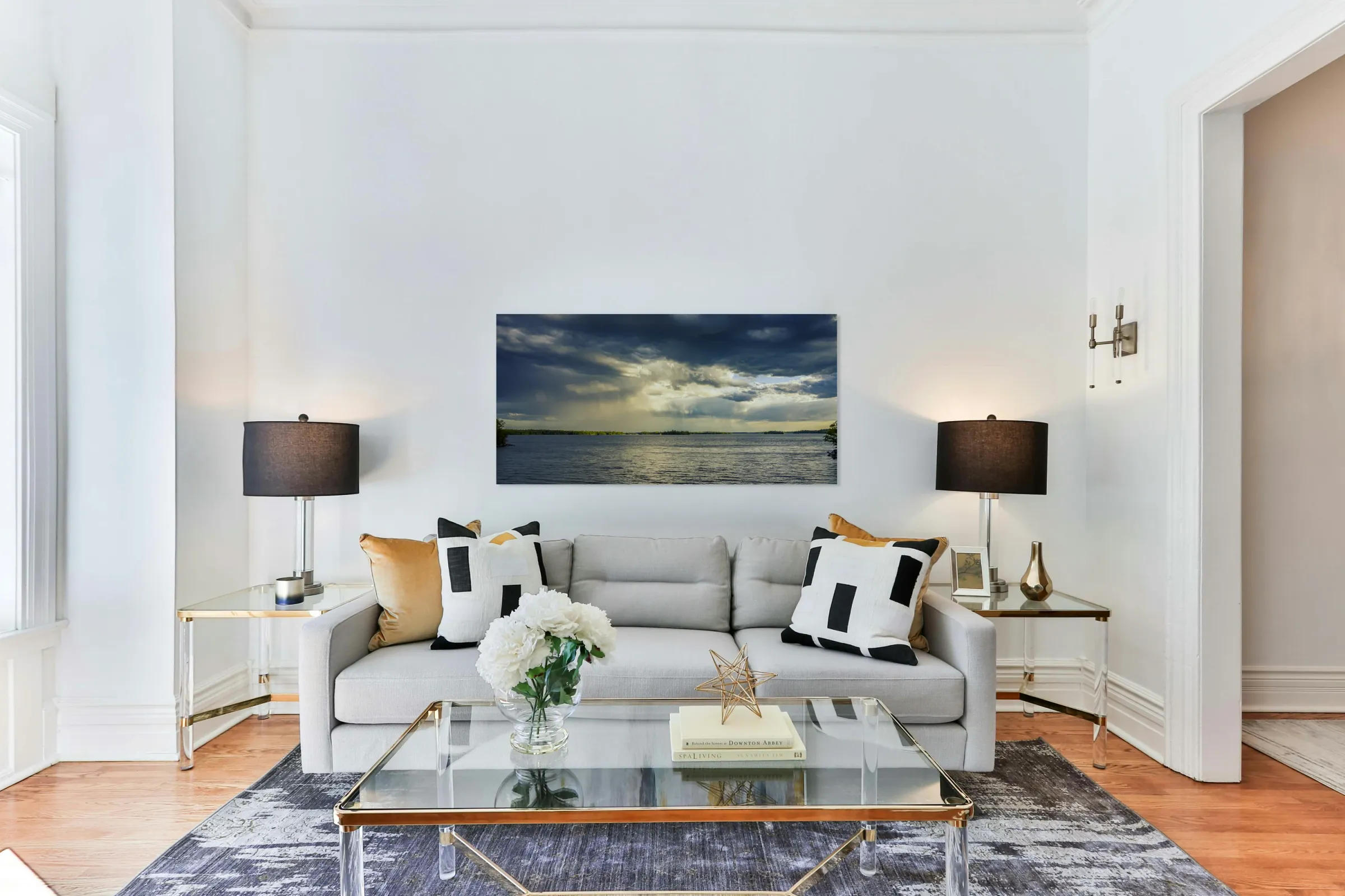 Toutes nos toiles étirées sont faites sur-mesure, à partir d’une toile d’exposition de 410g/m2 Bois large de 1.5 pouce de style “galerie”.