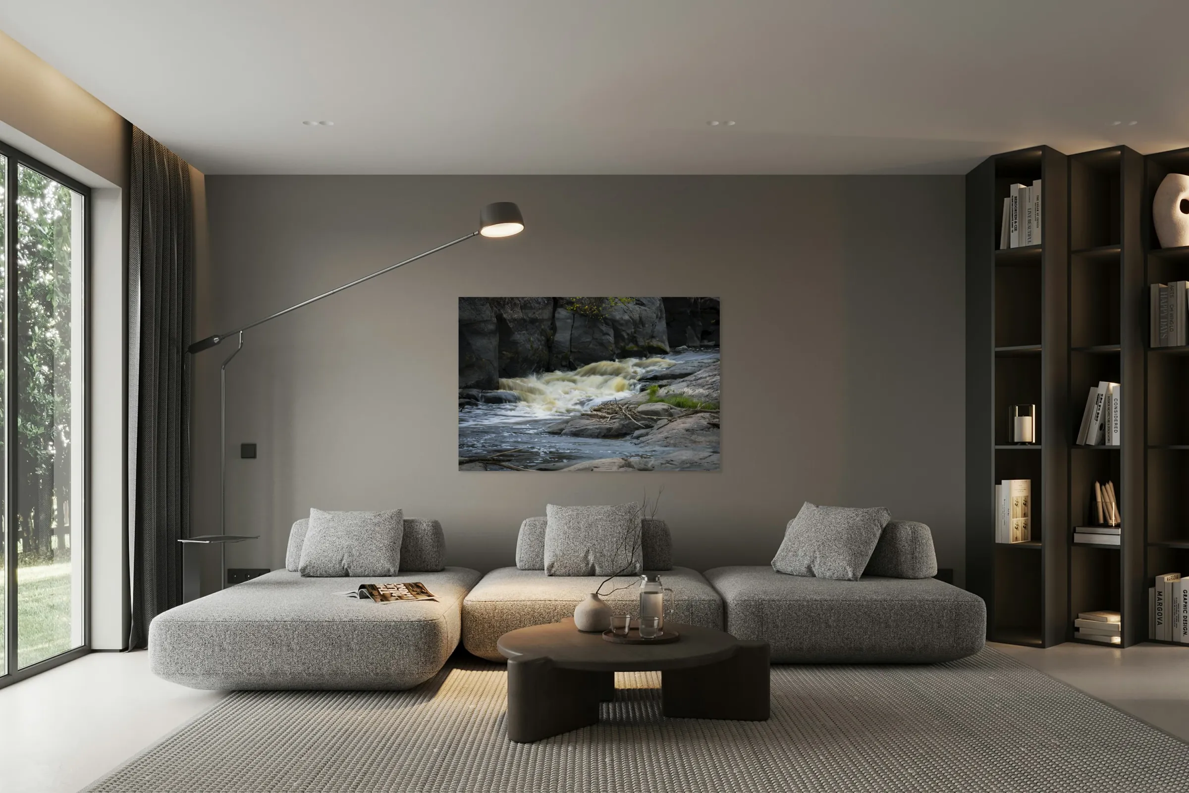 Toutes nos toiles étirées sont faites sur-mesure, à partir d’une toile d’exposition de 410g/m2 Bois large de 1.5 pouce de style “galerie”.