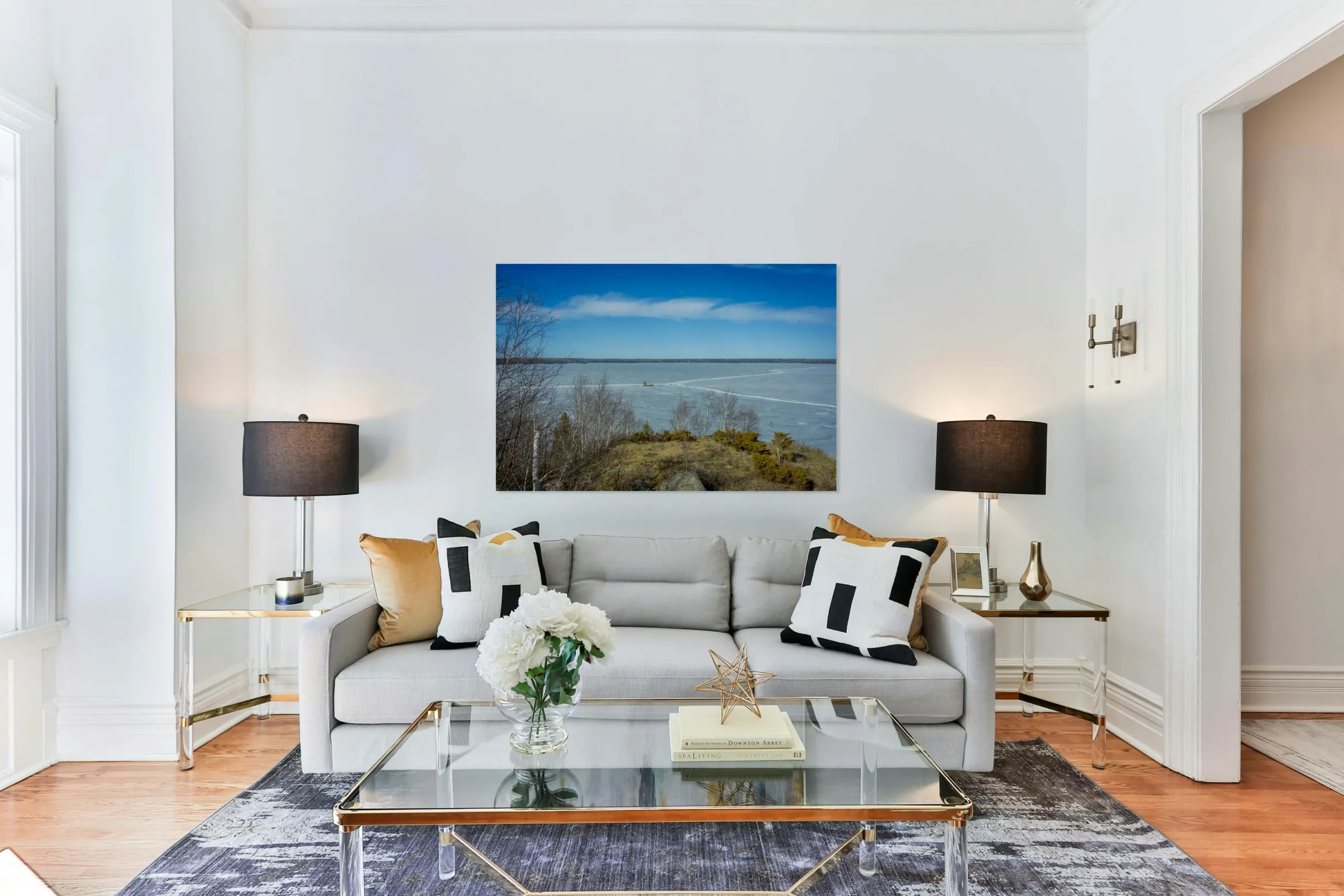 Toutes nos toiles étirées sont faites sur-mesure, à partir d’une toile d’exposition de 410g/m2 Bois large de 1.5 pouce de style “galerie”.