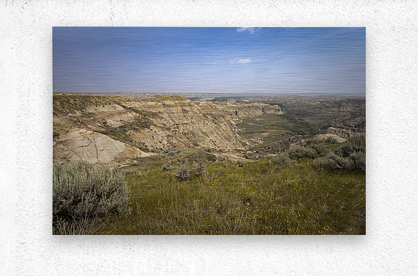 Experience the rugged beauty of "The Badlands," a striking landscape captured at the entrance of Dinosaur Provincial Park, Alberta. This piece reveals...[+]