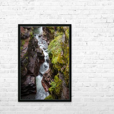 In the heart of Red Rock Canyon, Alberta, this captivating piece reveals the serene flow of a hidden river meandering through rugged cliffs. The deep ...[+]